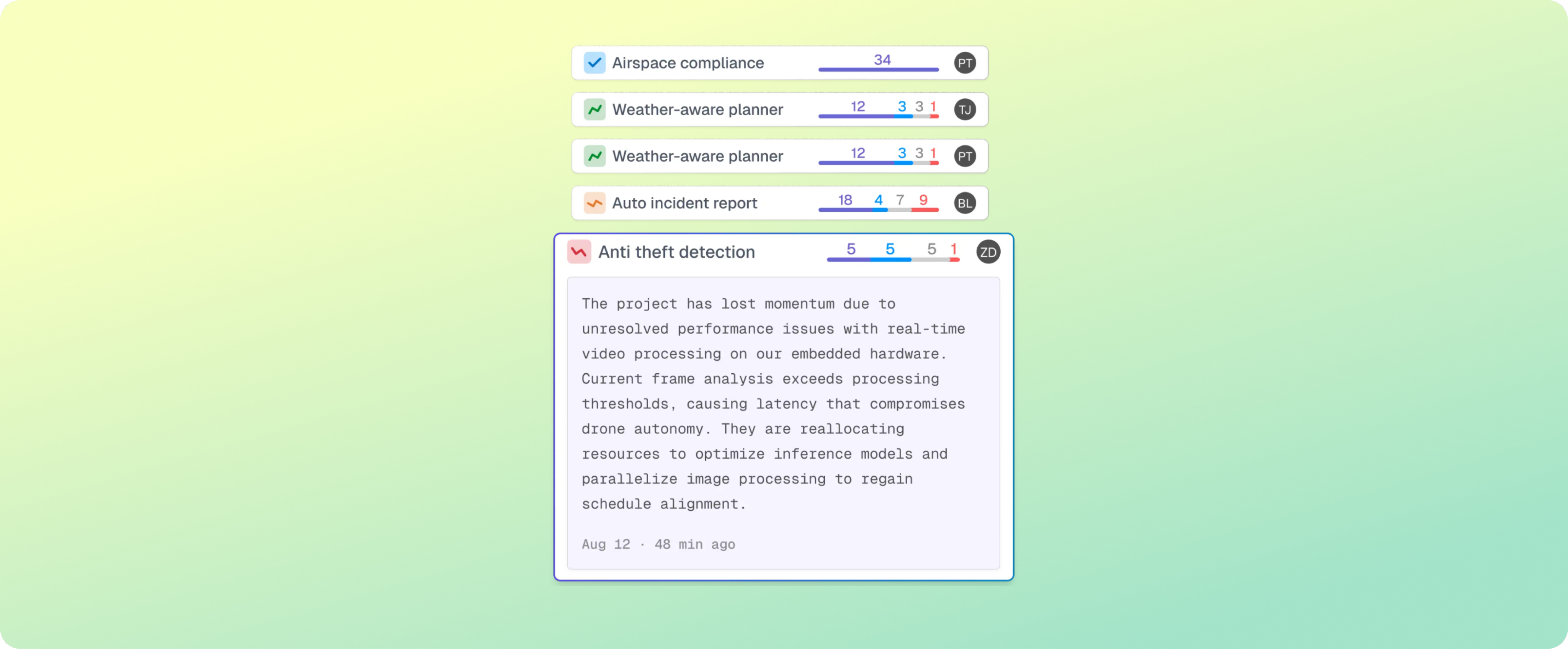 Always updated project summaries